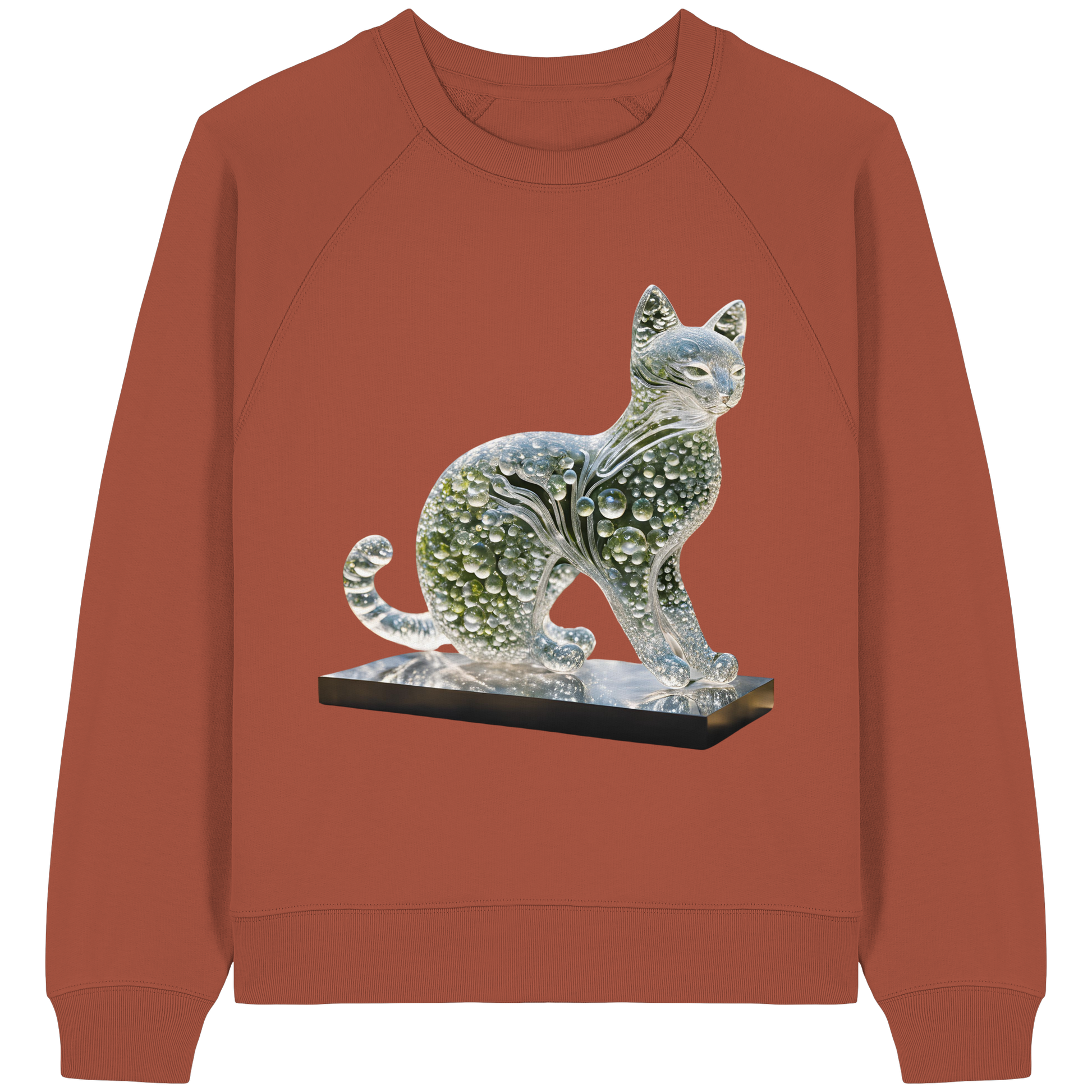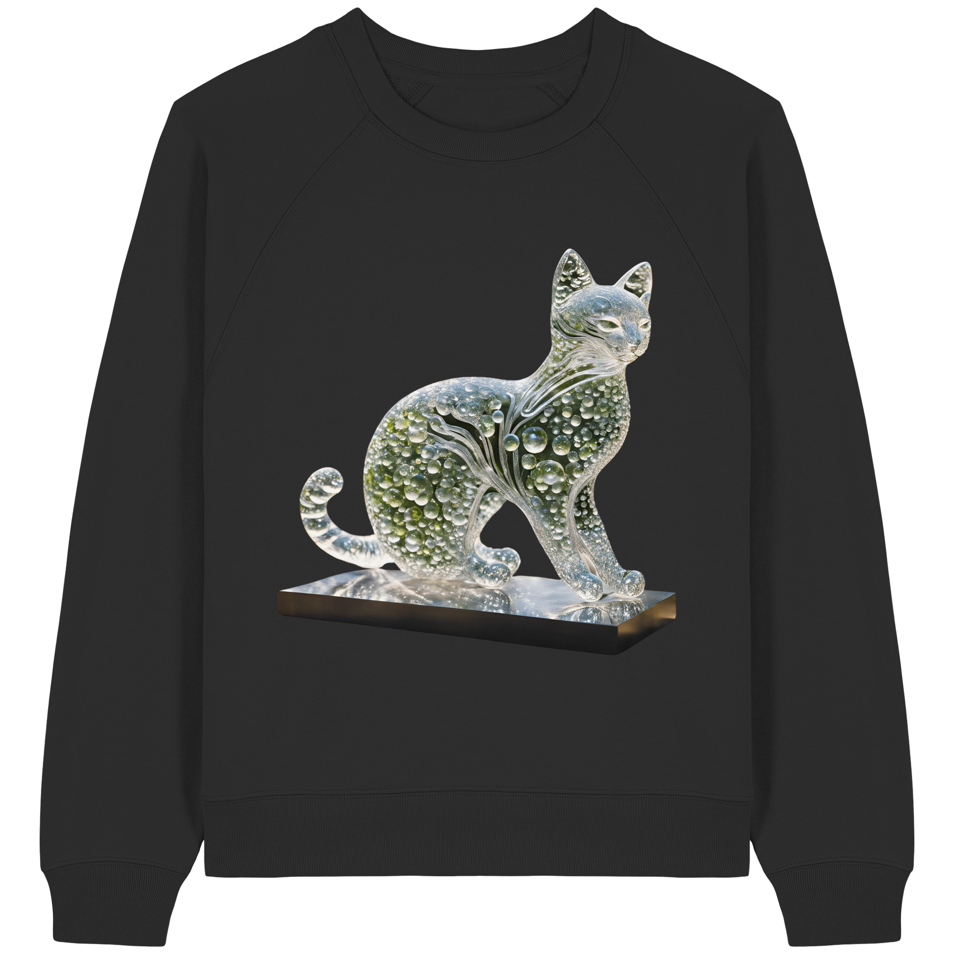 Erleben Sie den Zauber von Mode abseits des Mainstreams. Unser Damen Organic Raglan Sweatshirt mit dem einzigartigen Print "Katze transparent in grün" vereint Kunst und Komfort in einem. Die transparente Katzenfigur, gestaltet aus Wasser und grünen Tönen, verleiht Ihrem Stil einen skulpturalen Charakter und bringt Freude und Überraschung in Ihren Kleiderschrank.