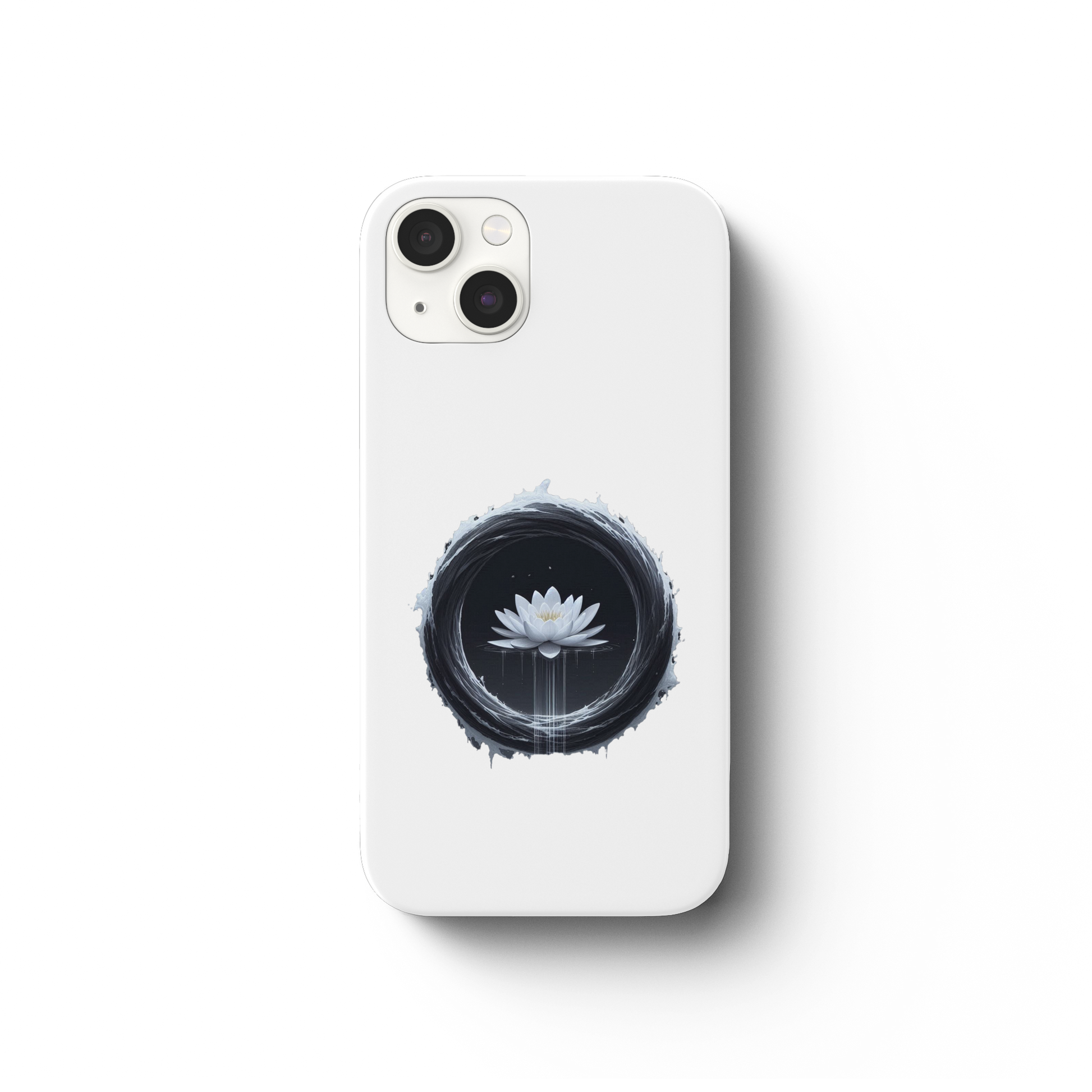 Einzigartiges Design: Der schwarze Wasserring mit der weißen Seerose in voller Blüte zieht alle Blicke auf sich und bringt die Schönheit der Natur auf dein Smartphone.