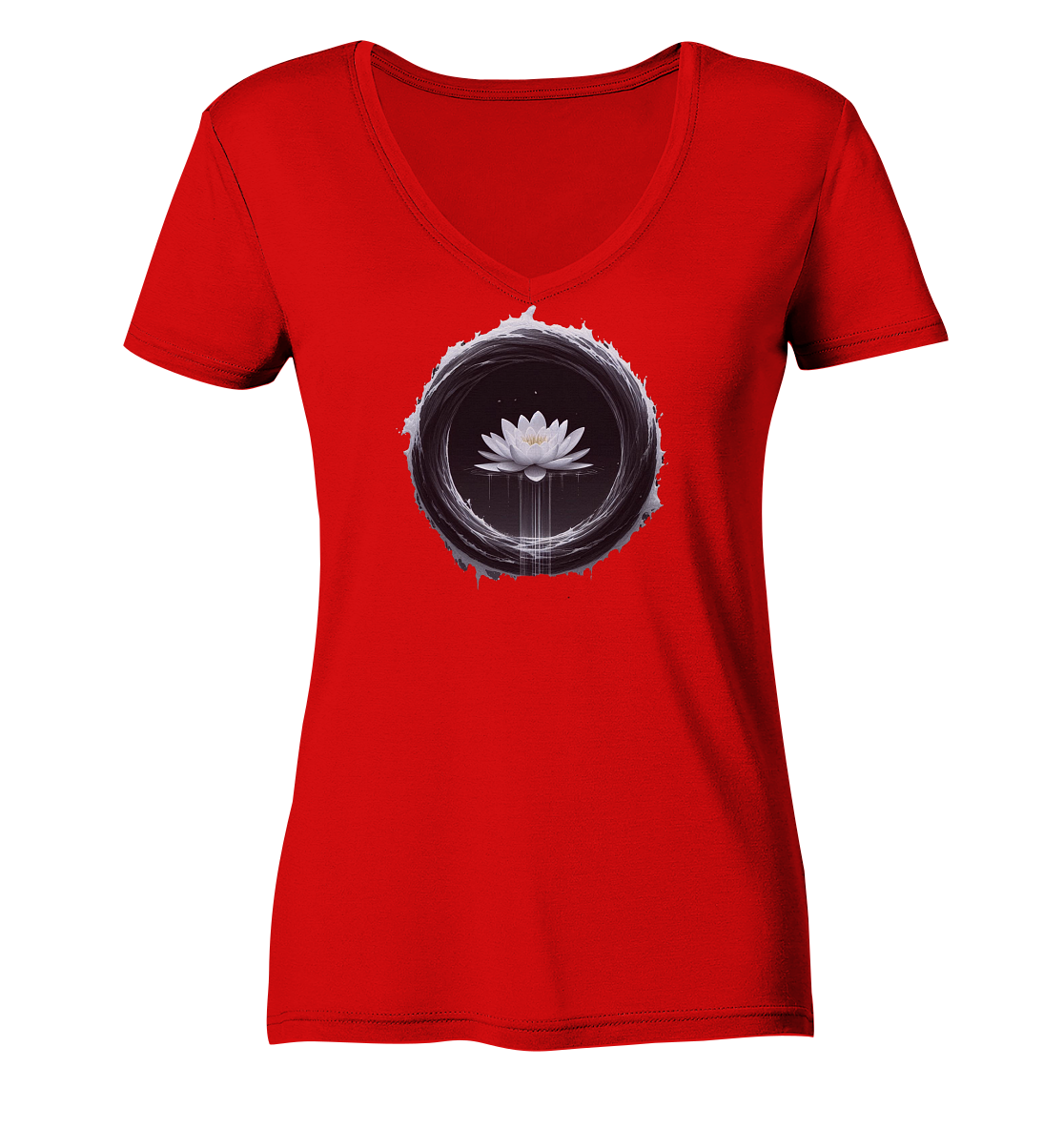 Schwarzer Wasserring mit weißer Seerose - Ladies V-Neck Shirt